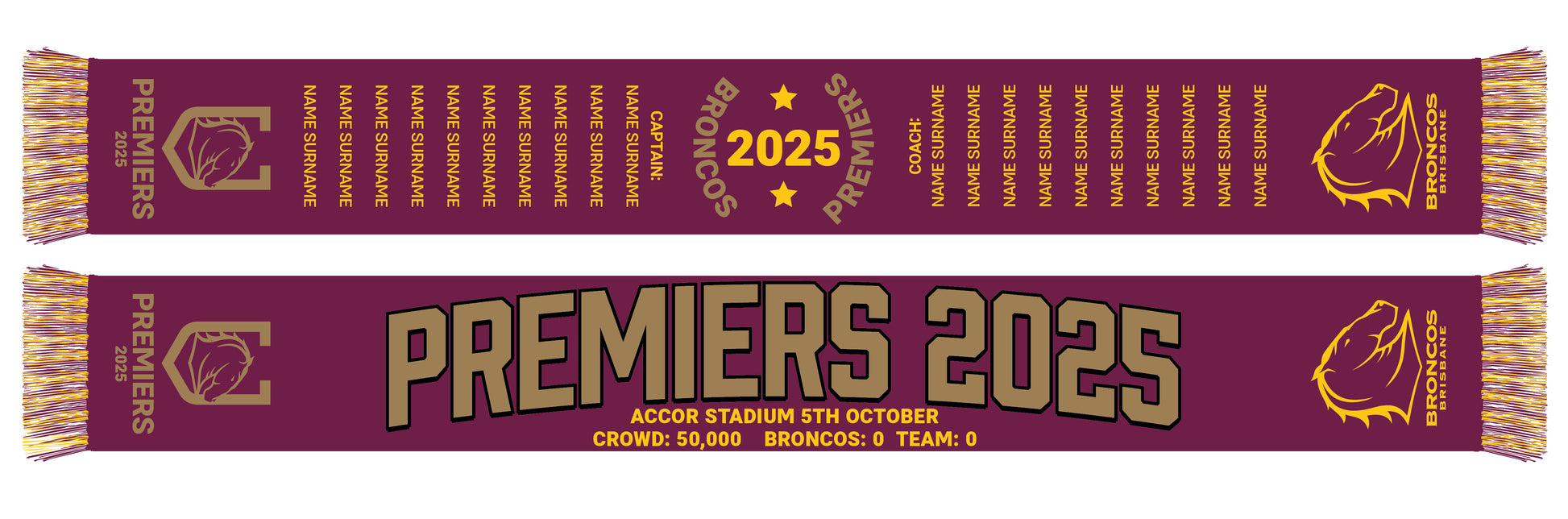 Brisbane Broncos 2025 NRL Premiers Scarf *PRESALE*