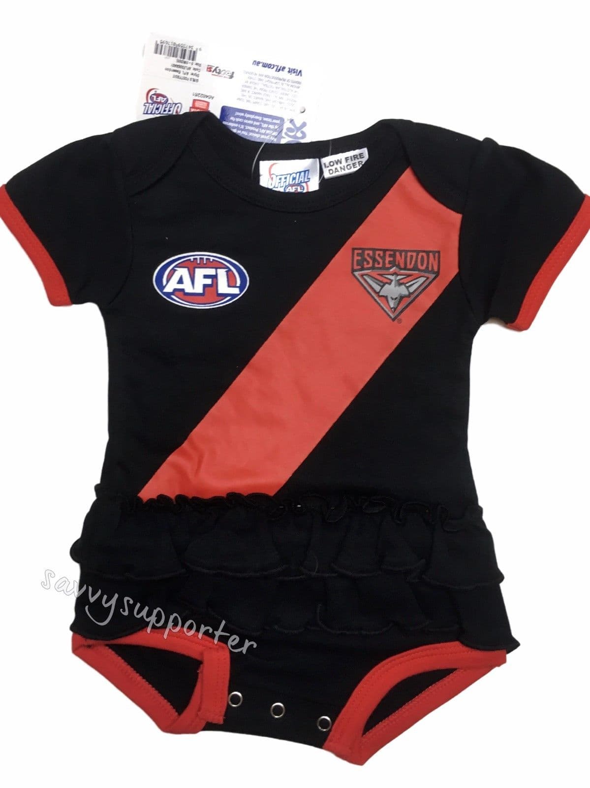 This product is part of the official Essendon Bombers merchandise range made on behalf of the AFL. A girls footysuit to suit the mini-cheerleader! Please check with size guide to help pick the best size.