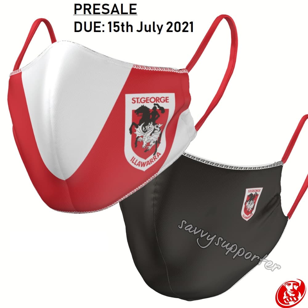 The 2021 NRL Face masks masks are double sided with the team colours on the front side, and a plain black with the primary logo on the reverse side.